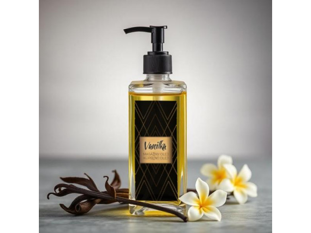 Masážny a kúpeľný olej s vôňou vanilky je jedinečným mixom prírodných olejov a jemnej vanilkovej arómy. Tento olej nie je len o zmyselnosti, ale o blahodárnych účinkoch na pokožku tela. Olej obsahuje vitamíny a minerály, ktoré pokožku vyživujú a posilňujú jej ochrannú bariéru pred škodlivými vplyvmi, čo zároveň zabraňuje strate jej vlhkosti. Vôňa vanilky má relaxačné účinky na telo aj myseľ, čo z neho robí ideálnu voľbu pre všestranné relaxačné masáže a kúpele.